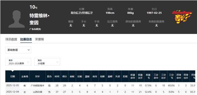 在首场比赛中,对阵山西男篮,广东男篮惨遭逆转,输给了对手。奎因在那场比赛中首秀,打了37分钟,拿到27分8篮板4助攻4抢断1盖帽,但失误多达7次。投篮命中率还不错,21投11中,达到52.4%。但是,三分球手感很差,5投0中,没有命中一球。这样的结果,还是被广东球迷不能认可。没有外线投射,关键时刻无法解决问题啊。